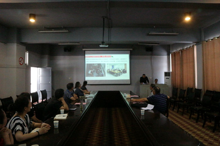 蒋新华参观了我院2018届优秀毕业设计作品展,并对我院各教研室、学生创新创业工作室、木鱼湖艺术工作室等教学实践场地进行考察,随后在五教会议室与我院教师开展了座谈会,会议上,段辉介绍了设计艺术学院概况、办学定位、人才培养目标、举措和成效等。