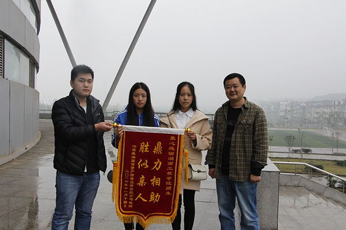 事后,11月14日,湘潭振湘国有资产经营投资有限公司员工李源在单位领导、同事及家人的陪同下,来到湖南工程学院向挽救自己生命的师生3人送来感谢信和锦旗。信上写道“感谢湖南工程学院李增强老师和汪秀平、鲁玲玲同学对素不相识的我伸出援救之手,挽救了我的生命”。