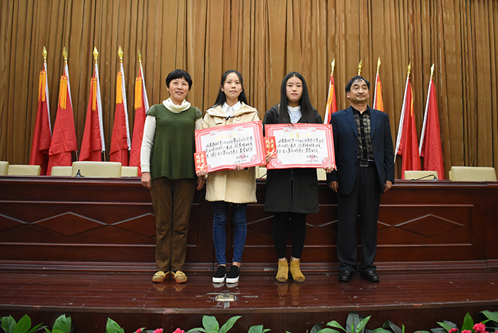随后,湖南工程学院宣传部部长曾曙林做总结发言。曾部长指出,见义勇为的先进事迹,感人肺腑、催人奋发。她们在意外事件发生时,所表现出来的精神风貌,不仅展现了美好的品德,也为学校赢得了荣誉,为广大师生树立了榜样,值得学习和称赞。相信,这种“校园精神”会不断传承,遍地开花,营造出乐于奉献、优良的校园氛围。最后由艺术学院党总支书记蒋德军宣读表彰决定,曾曙林部长、张曙书记为她们颁发荣誉证书及奖金并与她们亲切合影。