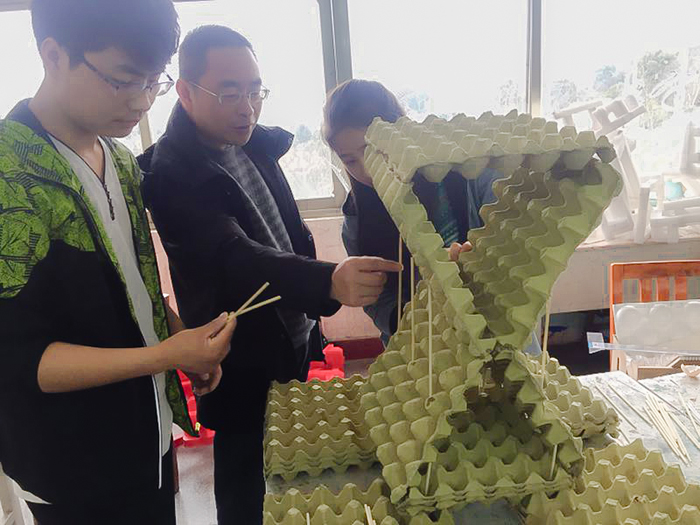 值得一提的是,在课中胡大虎老师利用一把现成的废旧围椅的骨架示范了一件名为“艺之翼”的公共艺术设计方案,以启发学生对空间和材料更直观的理解、开拓大家的想象力,环艺1502班全体同学决心将之制作出来,献给学校,装点校园,通过反复认真研究,齐心协力筹资、选材、装配、上色,这件饱含师生智慧和情谊、意寓挣脱平庸、放飞梦想的公共艺术作品终于伫立在365英国上市前坪,为美丽的湖工校园又增添了一抹亮丽的人文艺术景色。