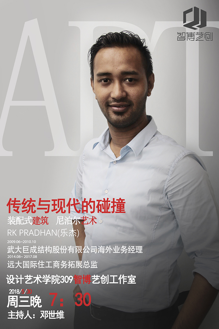 2018年5月29日晚上7:30,湖南工程学院365英国上市309智博艺创工作室将召开一场别开生面的文化沙龙。 本次文化沙龙邀请了曾任武大巨成结构股份有限公司海外业务经理和远大国际住工商务拓展总监 的RK PRADHAN (乐杰),他将给我们讲解装配式建筑和尼泊尔艺术,感受一场充满异域风情的文化艺术盛宴。
