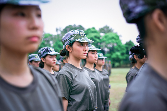 由于本次军训人数众多,学院将近400名新生分成两个连七个排,由7名教官负责训练,昔日书声朗朗的校园变成了激情澎湃的训练场。军训科目中军姿和队形队列训练占有很大的比重,对于平时站姿随意的同学,这可是一项大的挑战。“昂首,挺胸,抬头,手指插对裤缝”,教官首先向队员们讲解了军姿训练的基本要领。军训中一些同学动作不规范,教官们总是手把手地教给同学们。军事训练最基本的便是长时间笔直地站立,一天的军事训练下来,不少同学站得腰酸背疼,更有的同学脚上起了泡。站军姿是一项辛苦的训练,但是没有一个人退缩,没有一个人抱怨。在一声声清脆响亮的口令中,大家昂首挺胸。一次次完美的转体体现出他们昂扬的精神状态;他们脸上流过的汗水,彰显着他们永不放弃的精神;齐步走那整齐的排面和那铿锵的脚步声展现了他们激扬的斗志。
