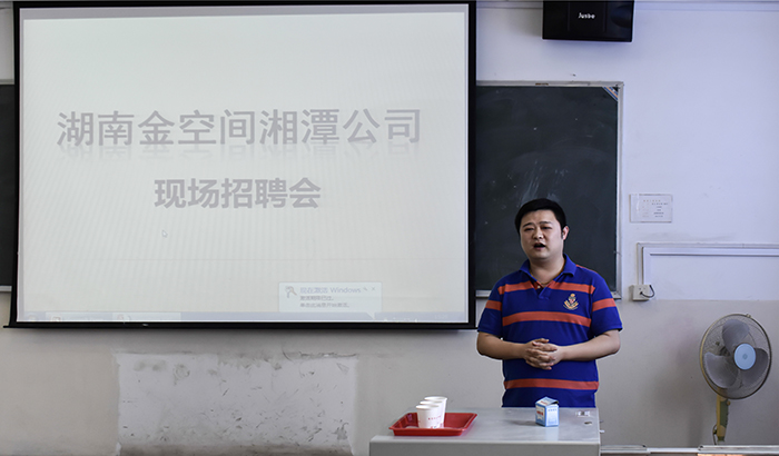 就业是每个大学生都要跨过的一道门槛,是人生的重要转折点,也是人生的一项伟大工程。5月16日下午三点,金空间湘潭公司在五教504召开招聘会。