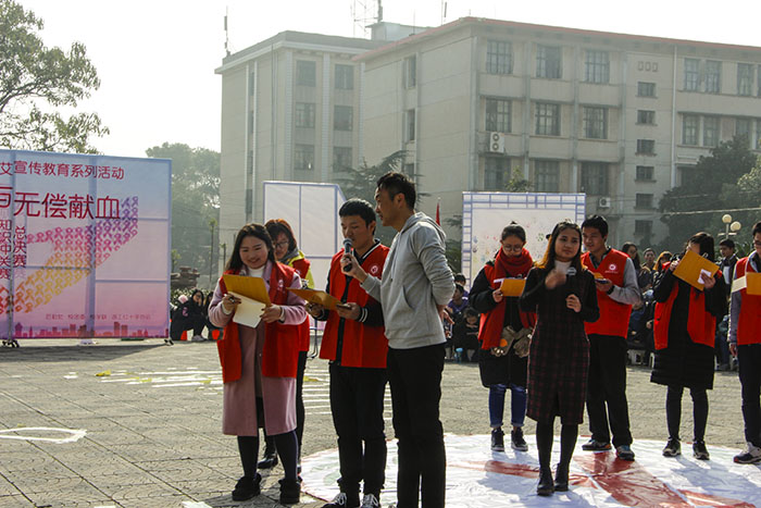 12月1日十二点半,为宣传防艾教育,由校团委、校学联和红十字协会在学海花园联合举办"湖南工程学院2016防艾宣传教育系列活动——防艾与无偿献血知识冲关赛总决赛”此次竞赛中,共有十四个队伍参加比赛,参赛总人数将近达到五百人。其中我院派出实力过强的产品设计1601班参赛。各学院代表团积极参赛,吸引了许多学生前来观摩比赛。