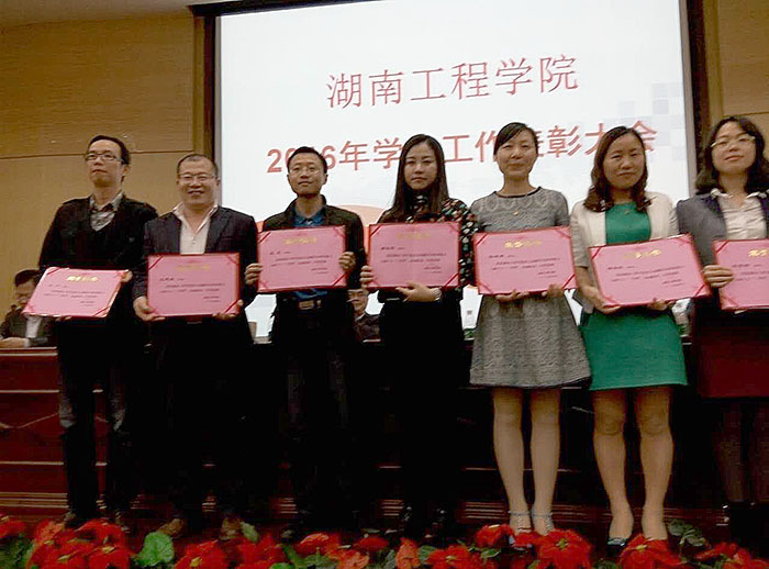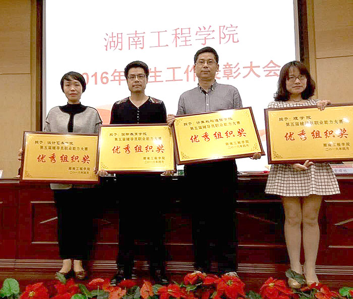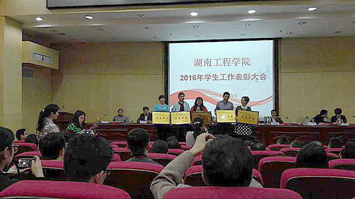 2016年4月27日下午,学校在第二报告厅召开了《湖南工程学院2015年度学生工作表彰大会》,大会由学生工作处处长刘涛主持,校党委书记刘国荣,副校长李军林,组织部长张小刚,宣传部长曾曙林,团委副书记张细政,学生处领导,各学院总支副书记,全体辅导员以及获奖班主任和学生代表参加了表彰大会。365英国上市学生工作频传捷报,获得下列殊荣: