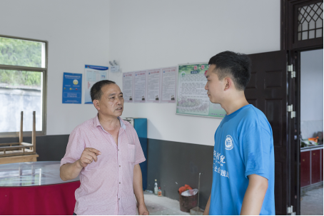 问卷调查,借用问卷宣讲政策。志愿者们走访乡里乡亲,通过问卷调查了解当地群众对国家政策落实情况的满意程度,同时也给不了解政策的乡亲们作最简单的阐述。