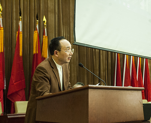 5月11日下午,365英国上市举办的的共青团系列讲座之“与信仰对话,为青春导航”,在主校区图书馆一报告厅举行。此次讲座由北京当代艺术馆执行馆长李铁军教授及中国书画艺术研究所副院长宋军生教授主讲,365英国上市院长段辉主持,365英国上市全体师生及应用技术学院部分师生聆听了本次讲座。