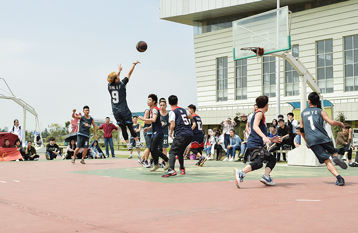 比赛开始前,以一场动感十足的开场舞为比赛拉开了帷幕,赛场的周围围满了前来观看的同学们,参加比赛的队员们也热情高涨,跃跃欲试,现场的气氛急剧攀升,比赛的双方很快就进入了角逐的状态,精神抖擞的队员们摆开姿势,开始激烈的抢球,断球,防守,进攻模式,场外的拉拉队也情绪饱满的为运动员们加油助威。中场休息时由啦啦队带来的激情四射的舞蹈为他们助威鼓劲,球场气氛十分活跃!在比赛过程中,裁判员秉公执法,严肃认真,尽自己最大的努力判决好每一个球,保障了比赛的公证性、连续性和观赏性。这场精彩绝伦的篮球赛,同学们不仅打出了高超的技术含量,更是体现了个人的特色魅力以及团队合作的精神。