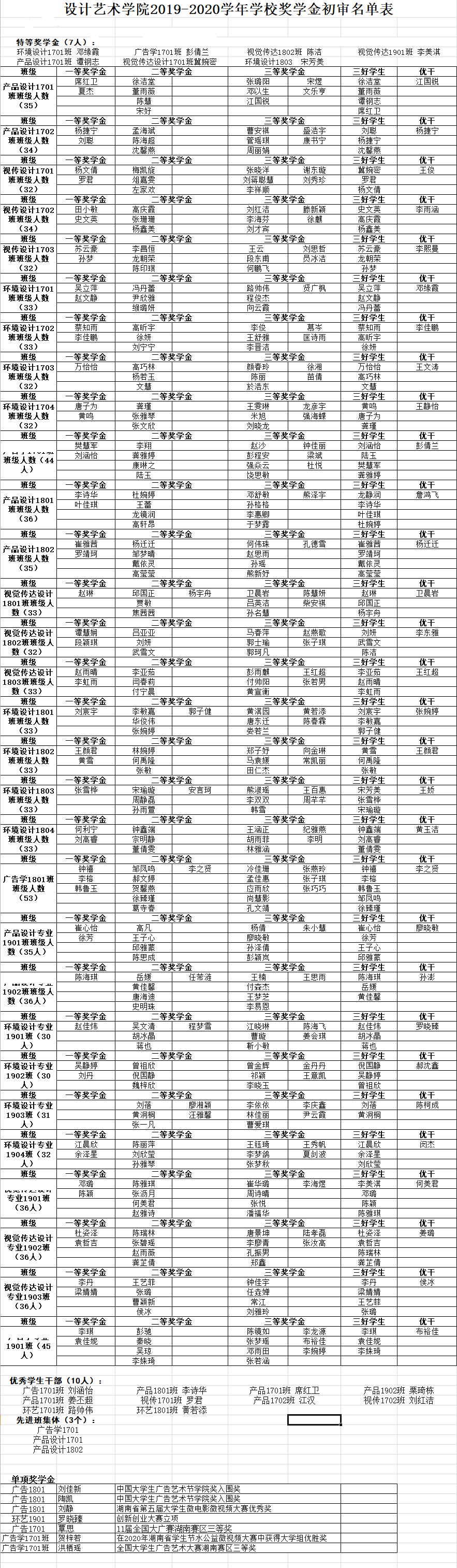 根据学校《校教字[2016]41号 湖南工程学院学生奖学金评定及管理条例》、《校教字[2014]51号 湖南工程学院学生综合素质测评办法(修订)》及《校教字[2014]52号 评选三好学生、优秀学生干部、优秀毕业生、先进班集体的办法》等文件精神和要求,我院认真组织、安排奖学金的评审工作,制定奖学金评审细则,并要求各班成立以班主任为组长的7人评审小组负责本班学生的奖学金评审工作。我院坚持公开、公平、公正的原则,实行等额评审,经学生工作办公室审核,党政联席会议审定,评选出特等奖学金7人,一等奖学金53人,二等奖学金110人,三等奖学金154人,具体名单附后。公示时间为2020年10月12日到10月14日,公示期三天,如有异议,请与学办联系。