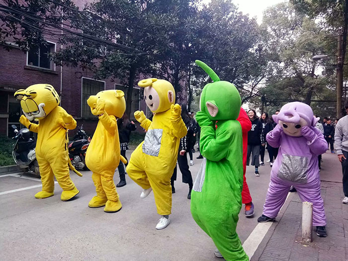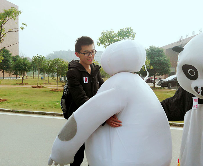 燃烧青春,生命不息。本次活动共分为四个环节,分别在学海和滨江食堂门口开展玩偶求抱抱,酷炫快闪,防艾签名,为艾奔跑系列活动。随着动感的音乐响起,快闪舞蹈《Daddy+BANG BANG BANG》瞬间点燃现场的气氛,紧接着《PPAP》响起,来自各个班级的同学纷纷加入,同学们带着防艾红丝带贴纸,共同随着音乐摇摆,玩偶娃娃们齐上场,更是尖叫连连。